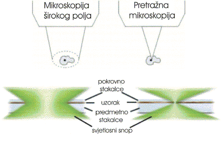 fokusirane laserske zrake, ograničava se protežnost pobudne svjetlosti u